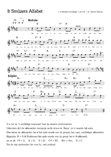 ‘It Smûzers Alfabet’ opstiet: ‘Liet 13’.